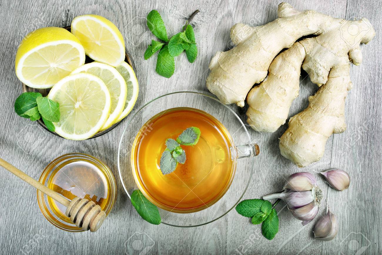 Apa se fierbe si dupa ce a dat in clocot se adauga usturoiul maruntit cubulete si ghimbirul ras. Se lasa la fiert la foc mic timp de 20 de minute si la infuzat inca 10 minute. Continutul se filtreaza si se amesteca cu mierea si zeama de lamaie.