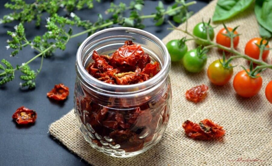 – Uscare la soare: Așează tava într-un loc însorit și protejat de praf, întorcând roșiile periodic, până când sunt complet uscate (poate dura câteva zile).